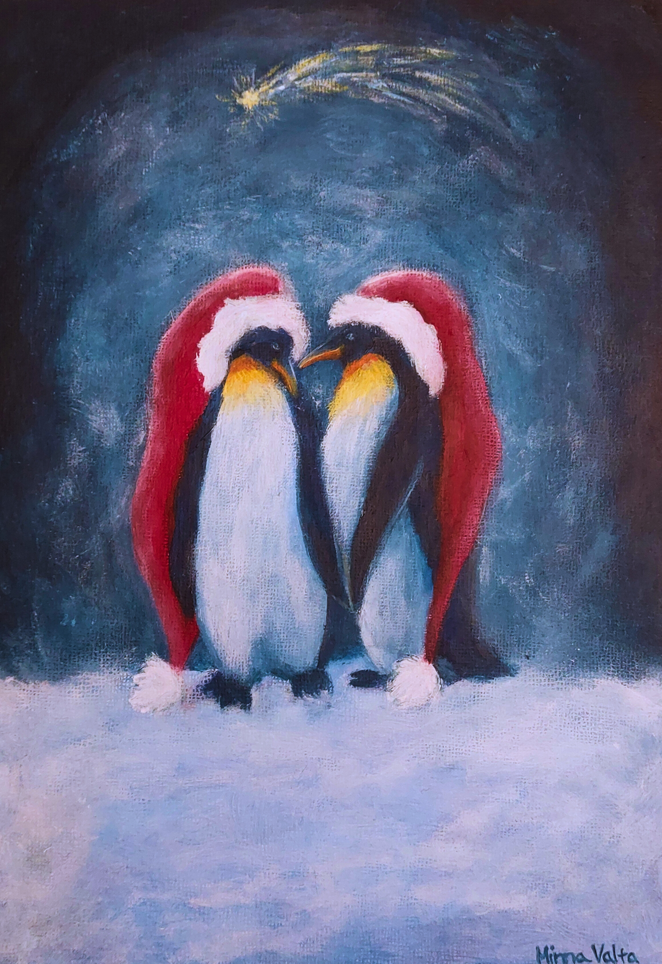 Myyn tilaisuudessa alkuperäisteoksiani, joulukortteja sekä taiteestani teetettyjä muistivihkoja, kirjanmerkkejä, tarroja ynnä muuta pientä kivaa pukinkonttiin.
